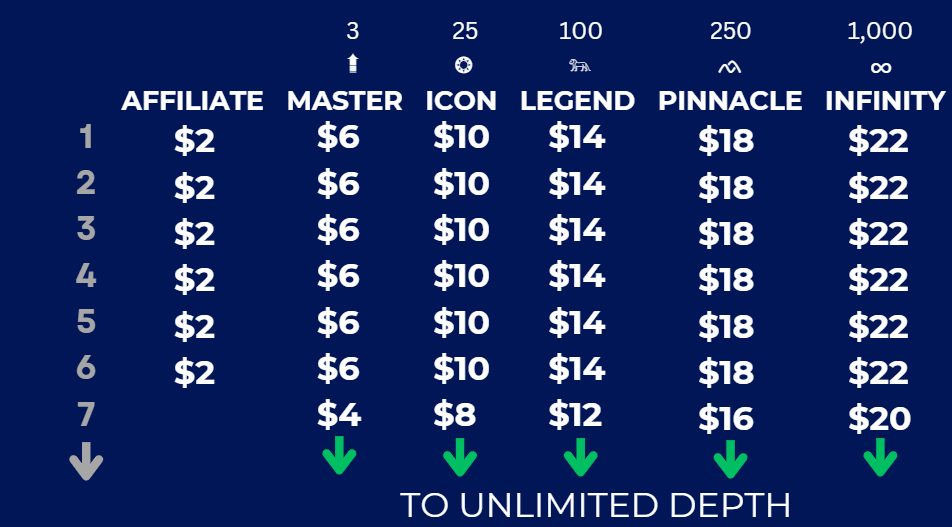 Our model is designed to help you build powerful, long-term income through some of the highest-paying royalties in the industry. ION offers a strong coded bonus + unilevel structure, paying you up to $22 on every subscription purchase across your entire organization—no matter who enrolled them. You will also earn $7 for every retail customer you acquire.